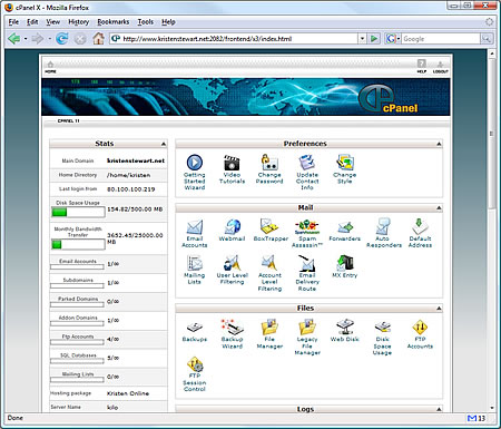 A cPanel website interface - available to all who host with FastLane Tek. |